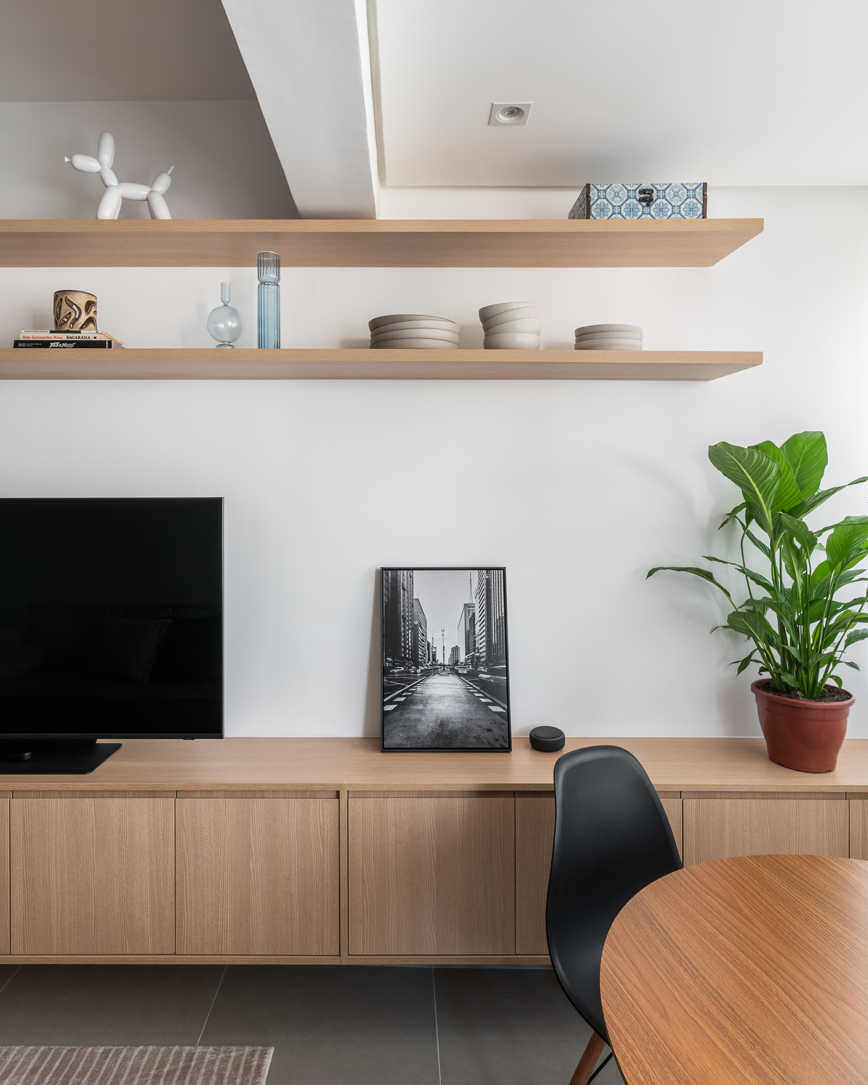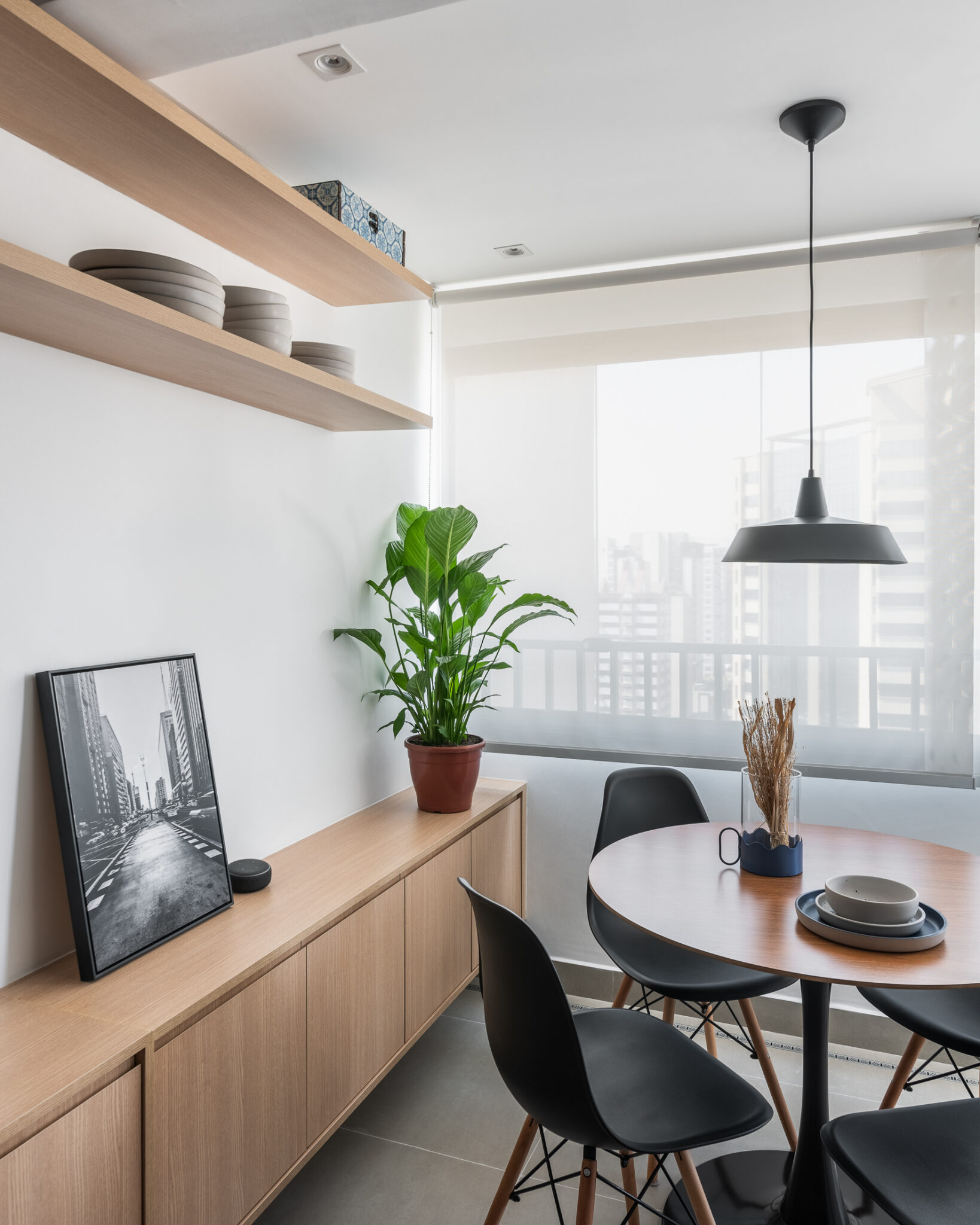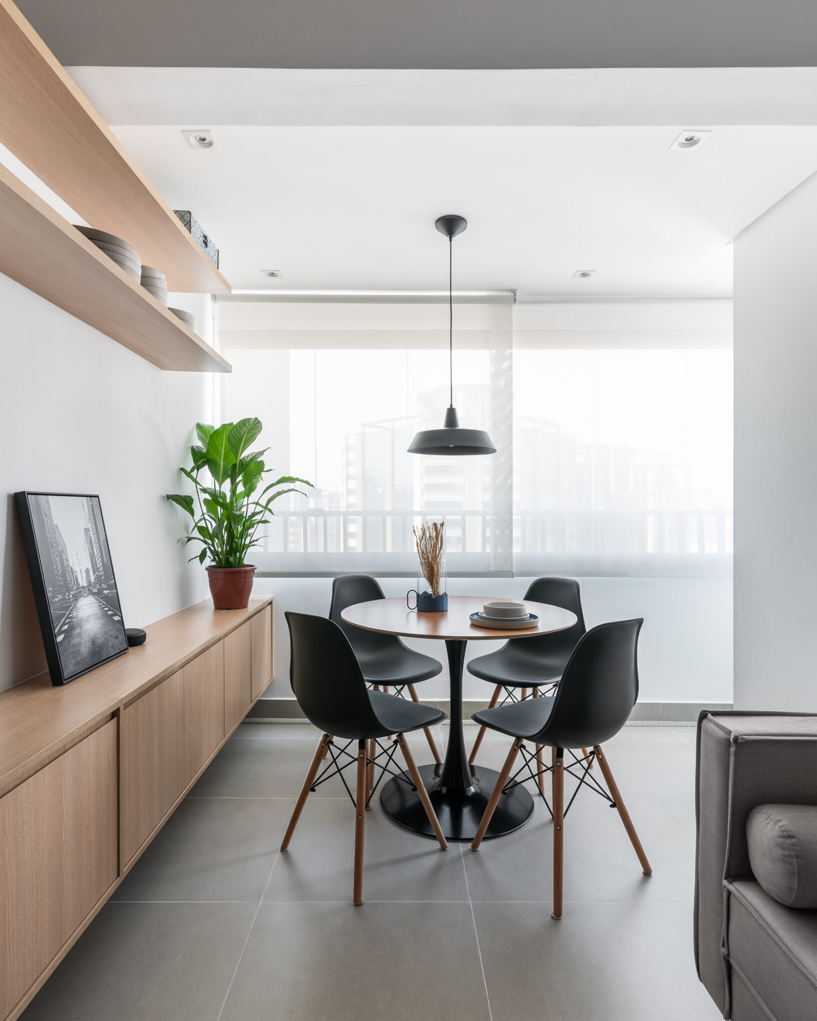 O nosso projeto de arquitetura prova que, com soluções inteligentes, cada centímetro conta. Design moderno, funcionalidade e muito estilo em um apartamento compacto que é a cara do conforto e da praticidade.