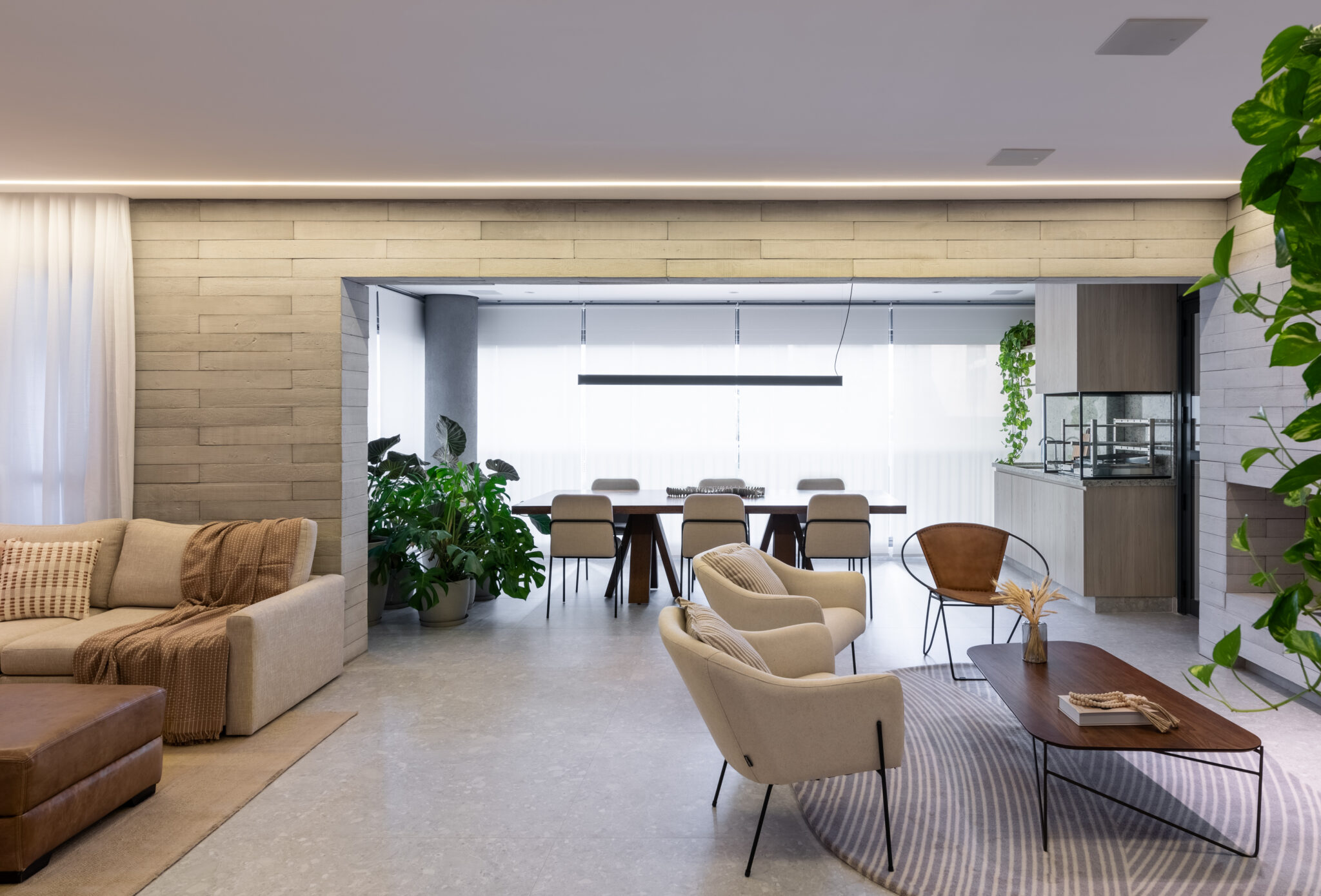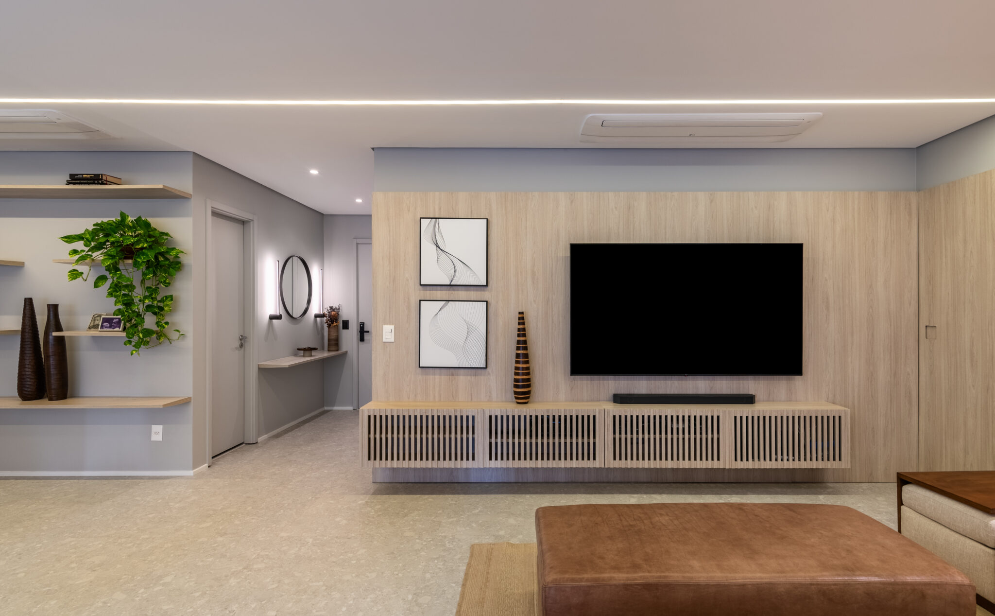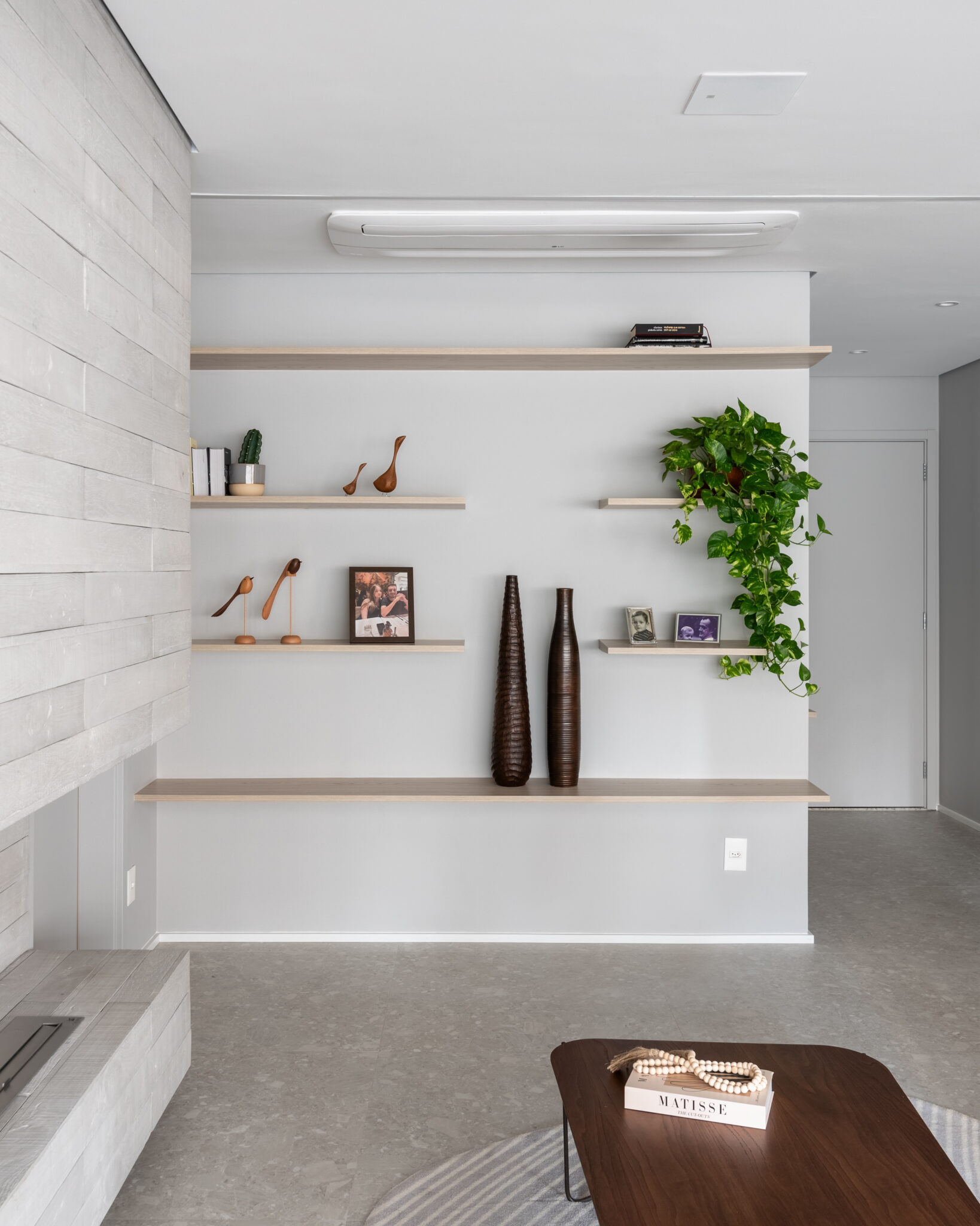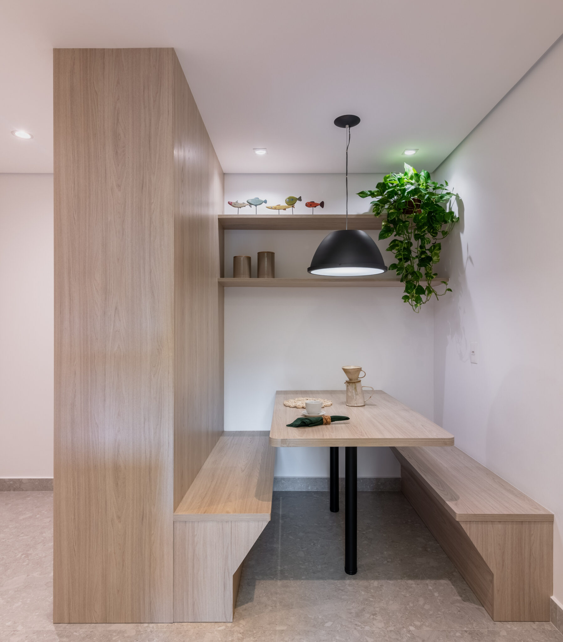Este apartamento de 150m² tem o estilo Japandi, ou seja, a junção de dois estilos que se complementam perfeitamente: o escandinavo com o minimalismo japonês.