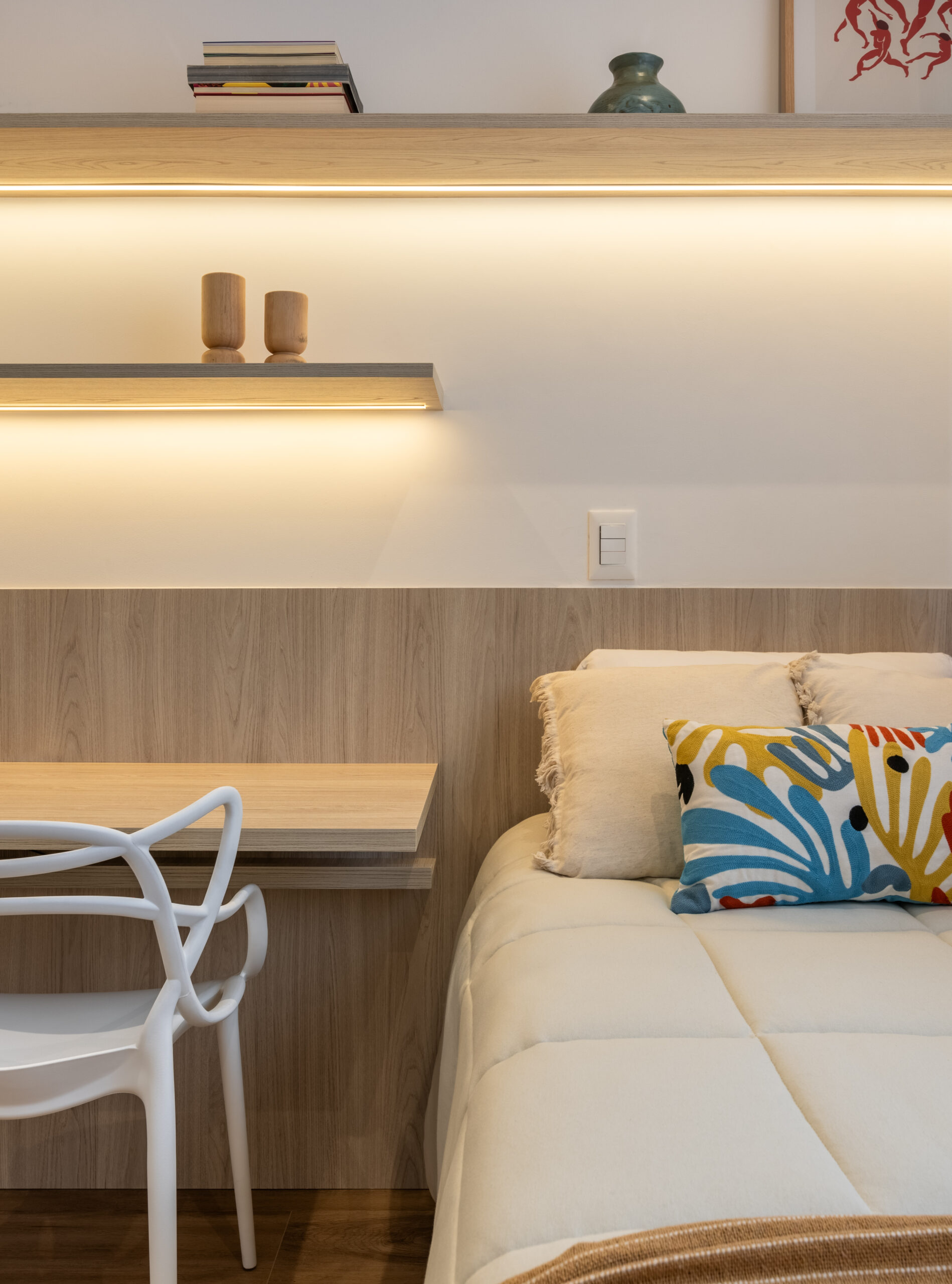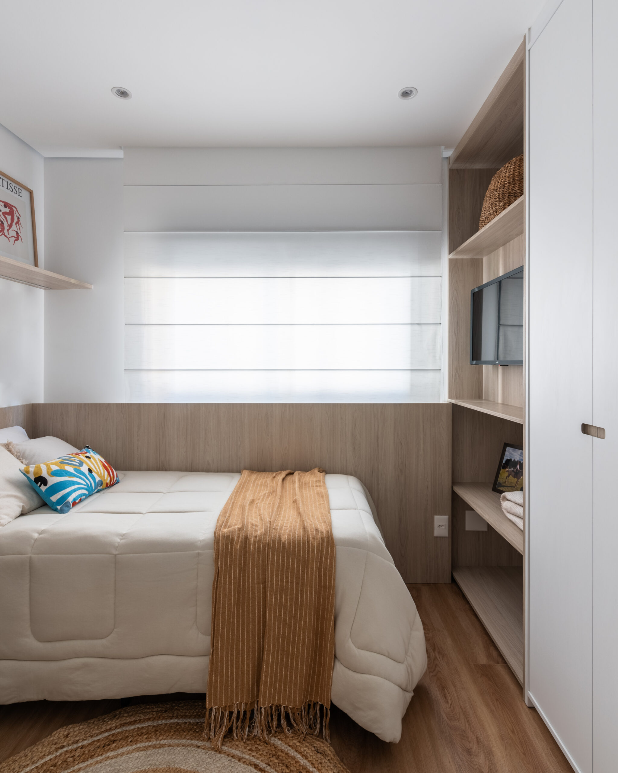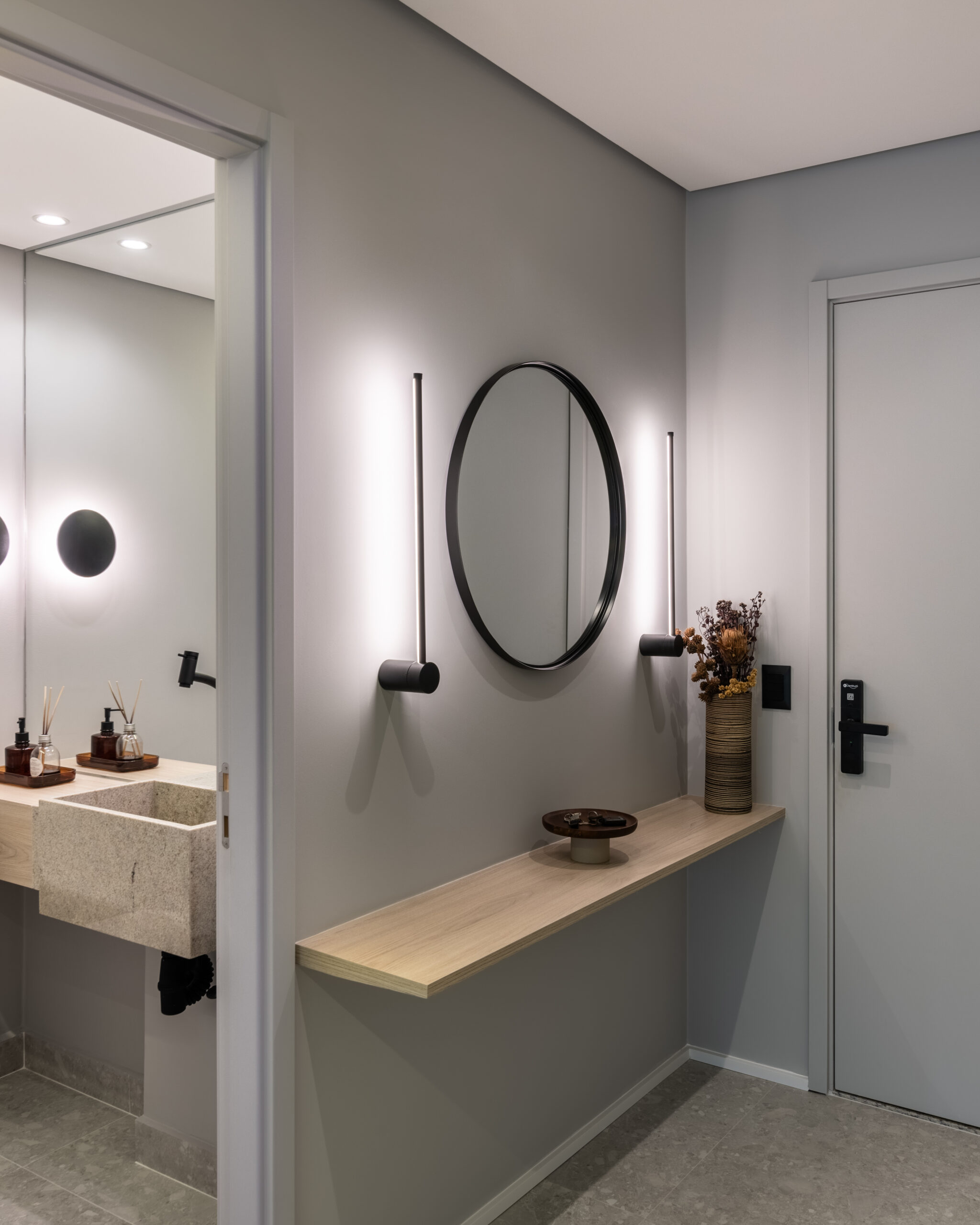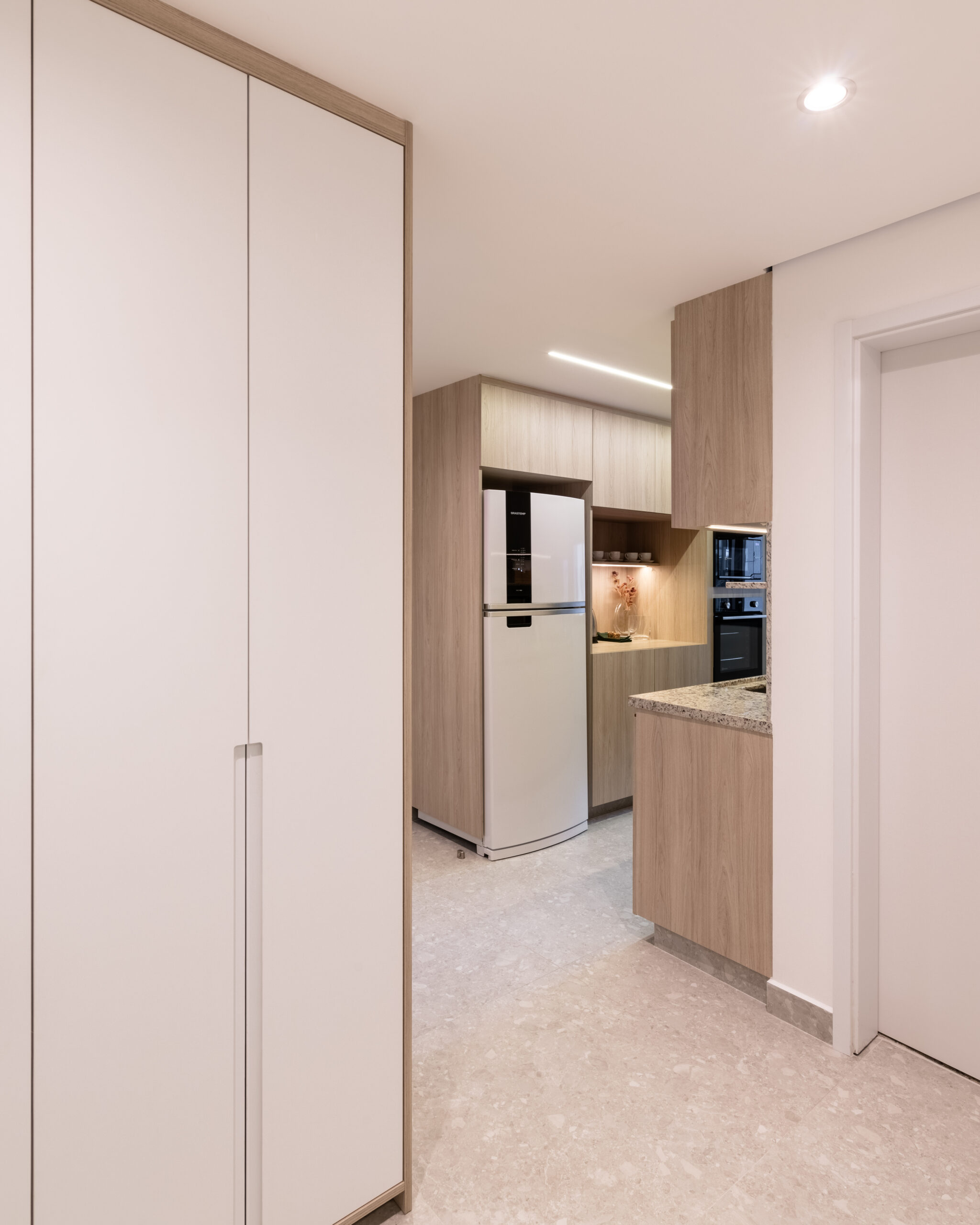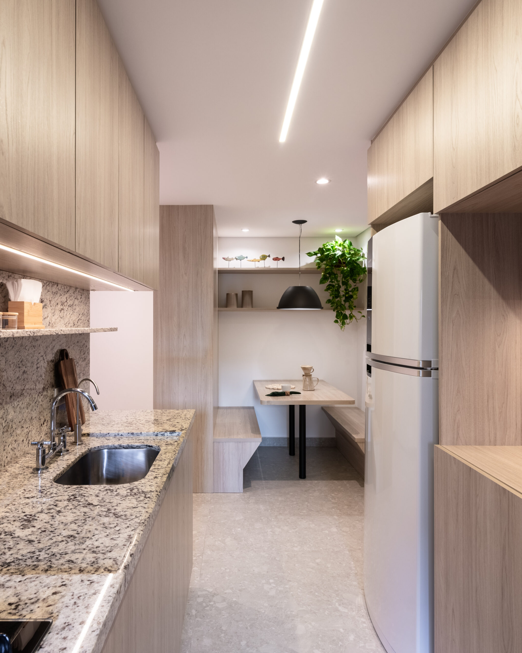 Este apartamento de 150m² tem o estilo Japandi, ou seja, a junção de dois estilos que se complementam perfeitamente: o escandinavo com o minimalismo japonês.