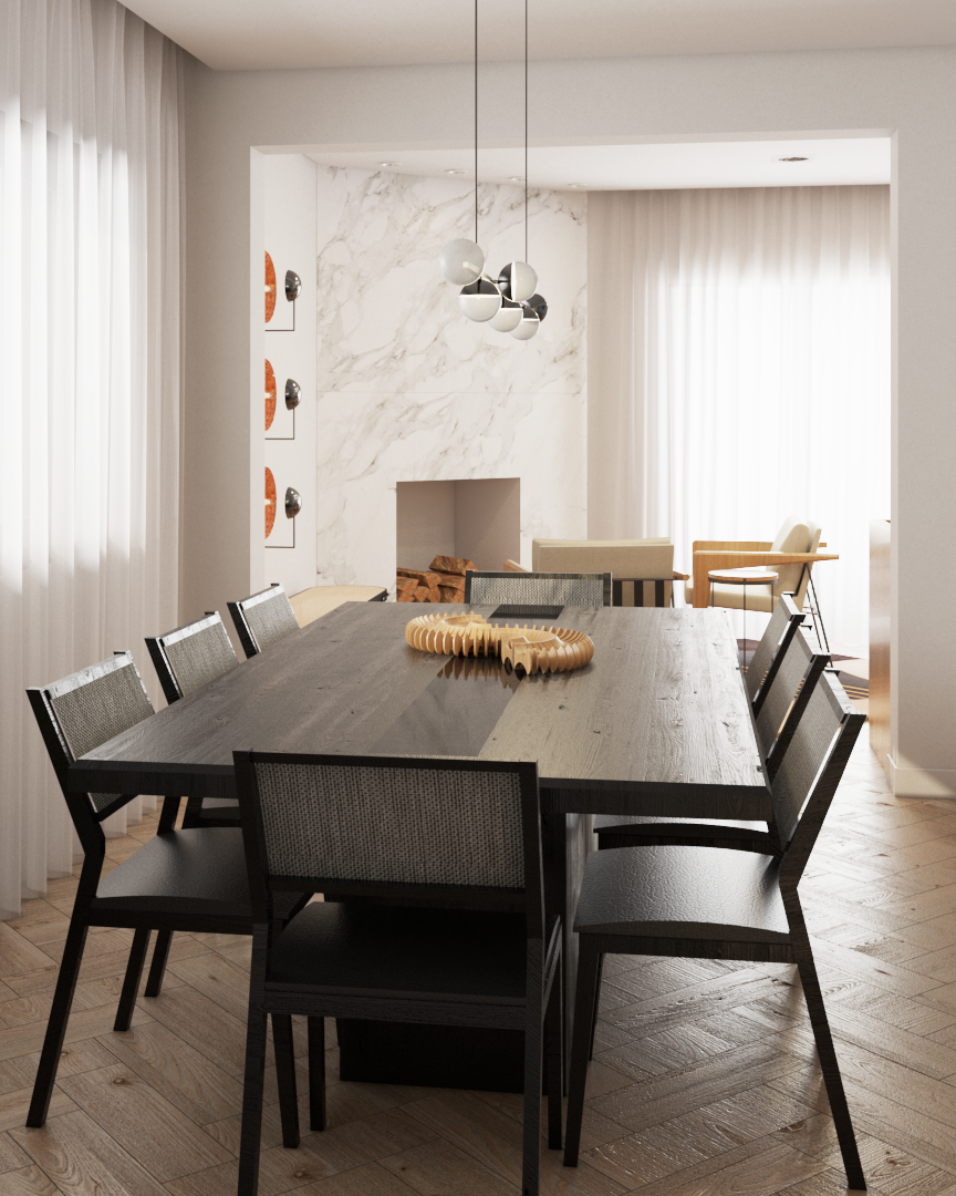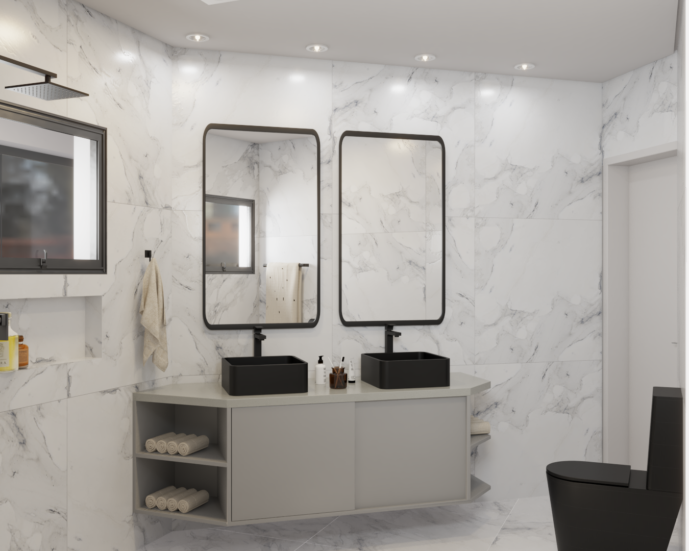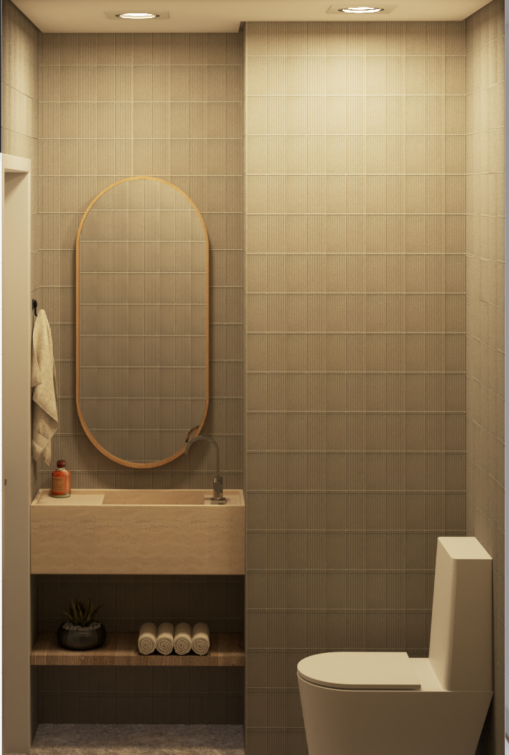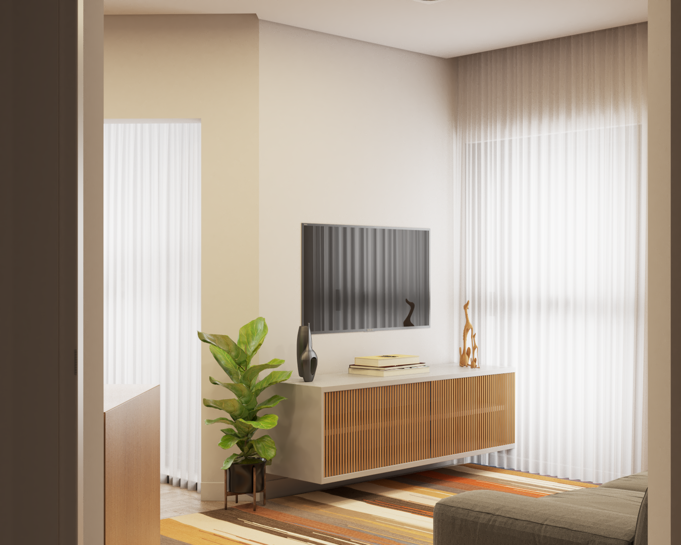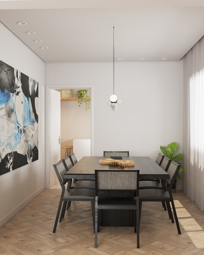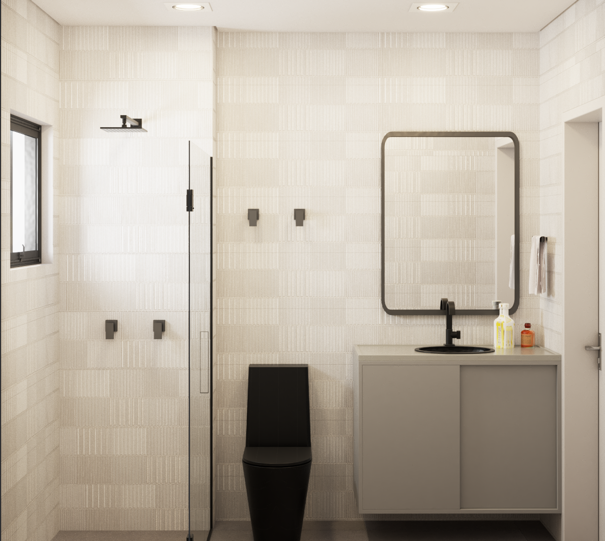 Os acabamentos escolhidos são clássicos e atemporais, o que permite que elementos decorativos ganhem destaque nos ambientes.