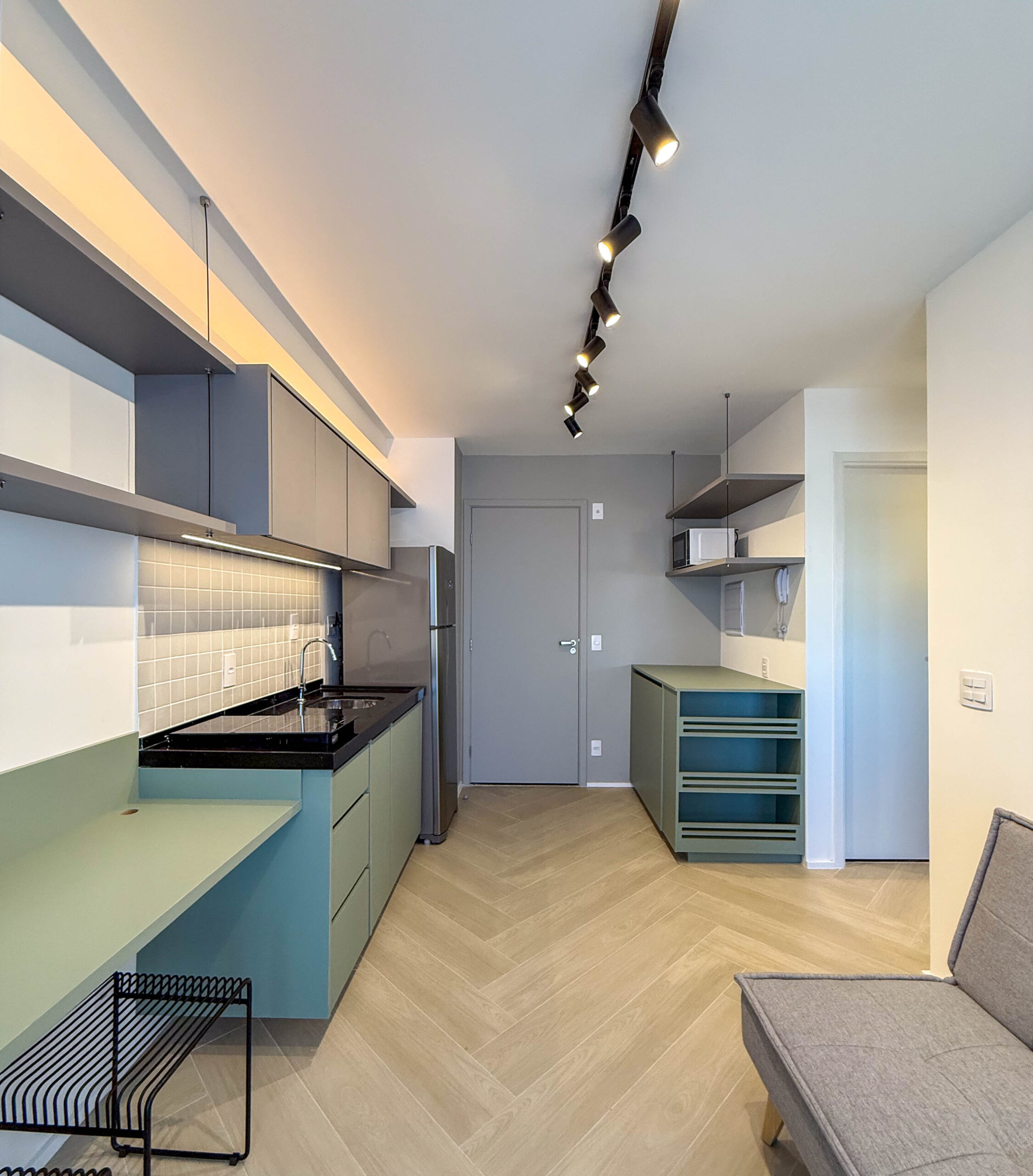 Queremos aqui destacar a importância de se fazer um bom projeto, pois neste tipo de negócio de locação, principalmente, os olhos precisam brilhar. Neste caso a utilização de uma paleta neutra e de fácil adaptação a decoração do futuro inquilino.
