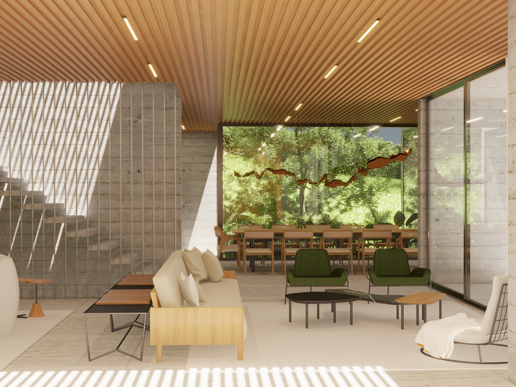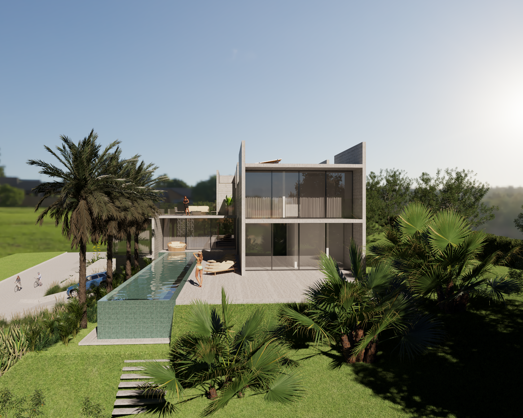 O seu desenho é moderno, com linhas simples, e retrata a tradicional arquitetura paulistana com a utilização do concreto na sua forma bruta, não só como estrutura, mas como partido do projeto. A casa será rodeada de muito verde e através de grandes panos de vidro, os jardins farão parte dos ambientes internos.