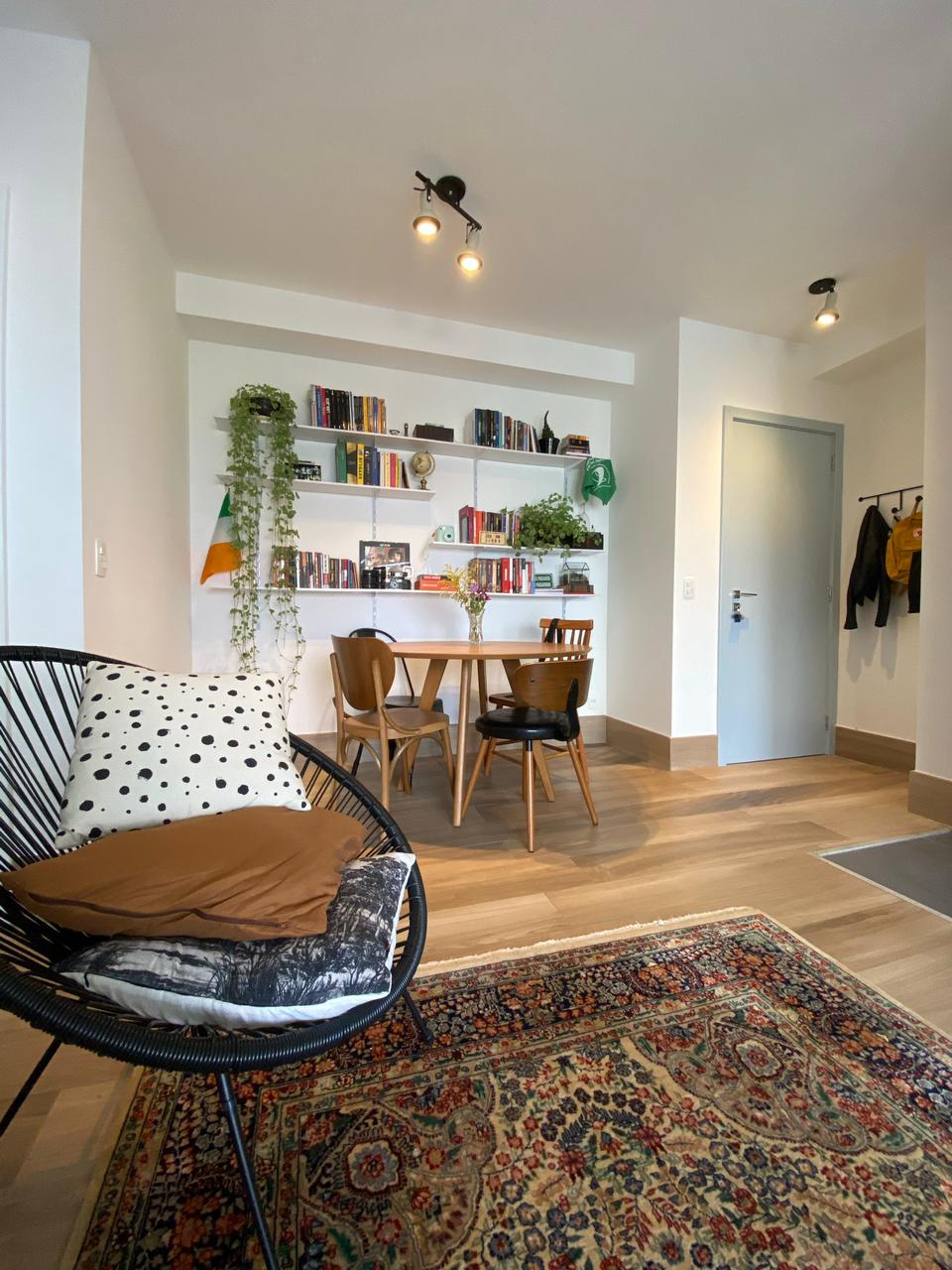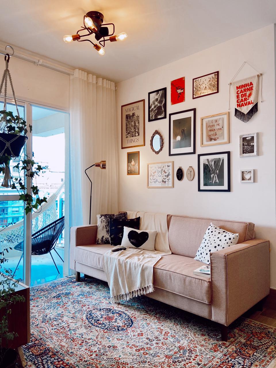 Esse projeto foi resultado de uma consultoria feita para transformar um apartamento alugado no lar de uma mulher jovem, artística, forte e cheia de personalidade.
